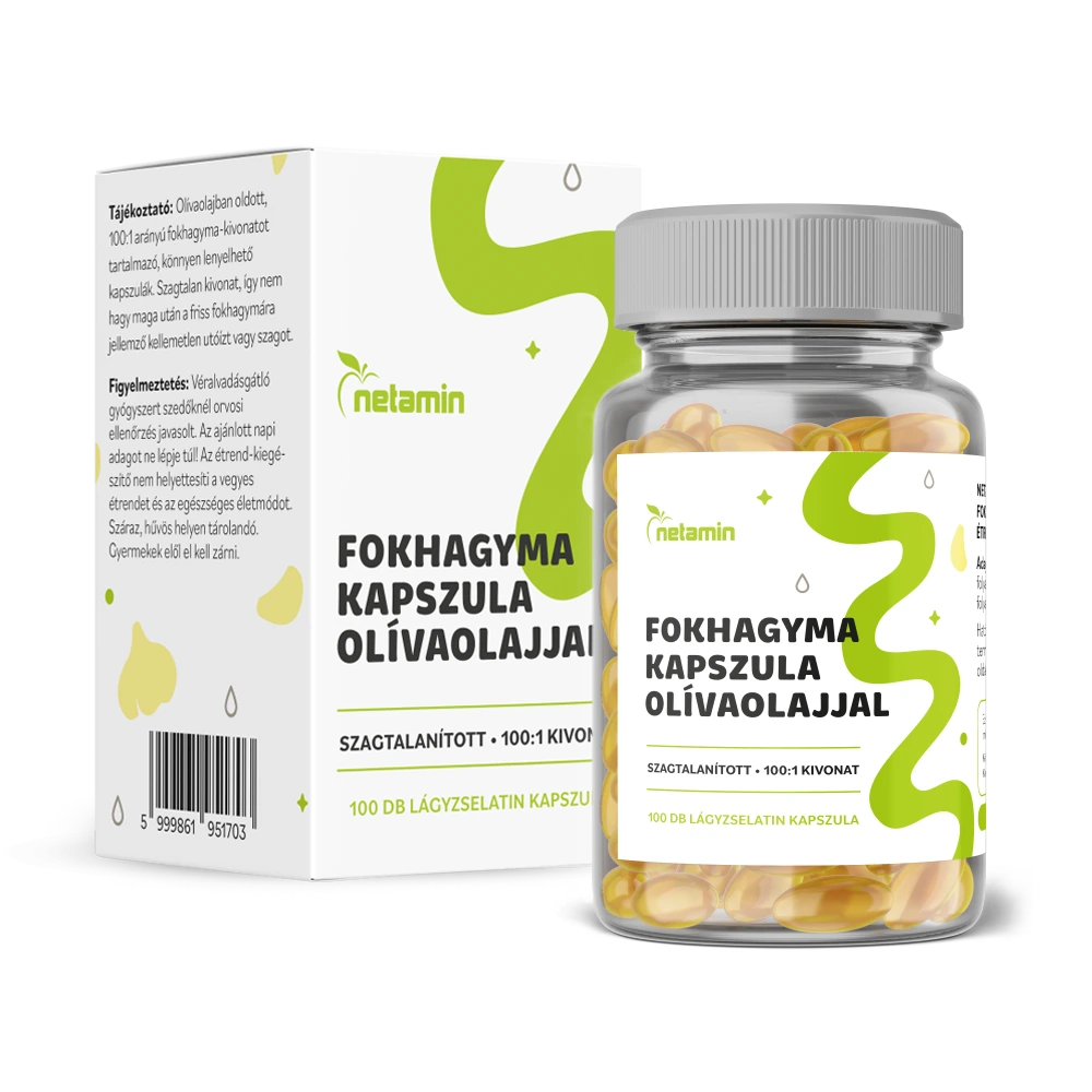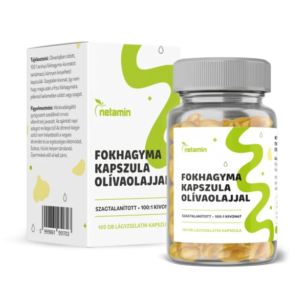 A Netamin Fokhagyma kapszula olívaolajjal megőrzi a fokhagyma minden hatóanyagát! A 100:1 arányú kivonat napi adagja (1 kapszula) 1000 mg friss fokhagymának felel meg.