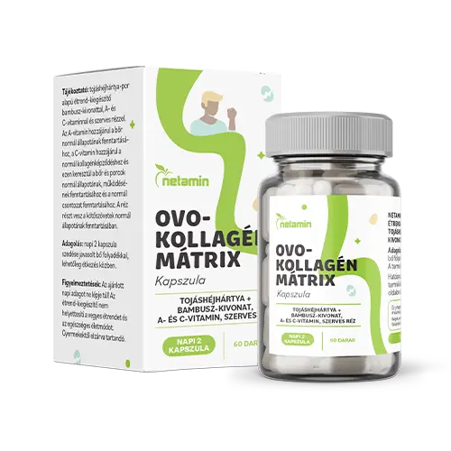 * Ez az ismertető nem a Netamin OVO-Kollagén Mátrix kapszulára vonatkozik – általában véve mutatja be a tojáshéj membránról, bambusz kivonatról, C-vitaminról, A-vitaminról és rézről rendelkezésünkre álló tudományos ismereteket. A Netamin OVO-Kollagén Mátrix kapszula nem gyógyhatással rendelkező készítmény.